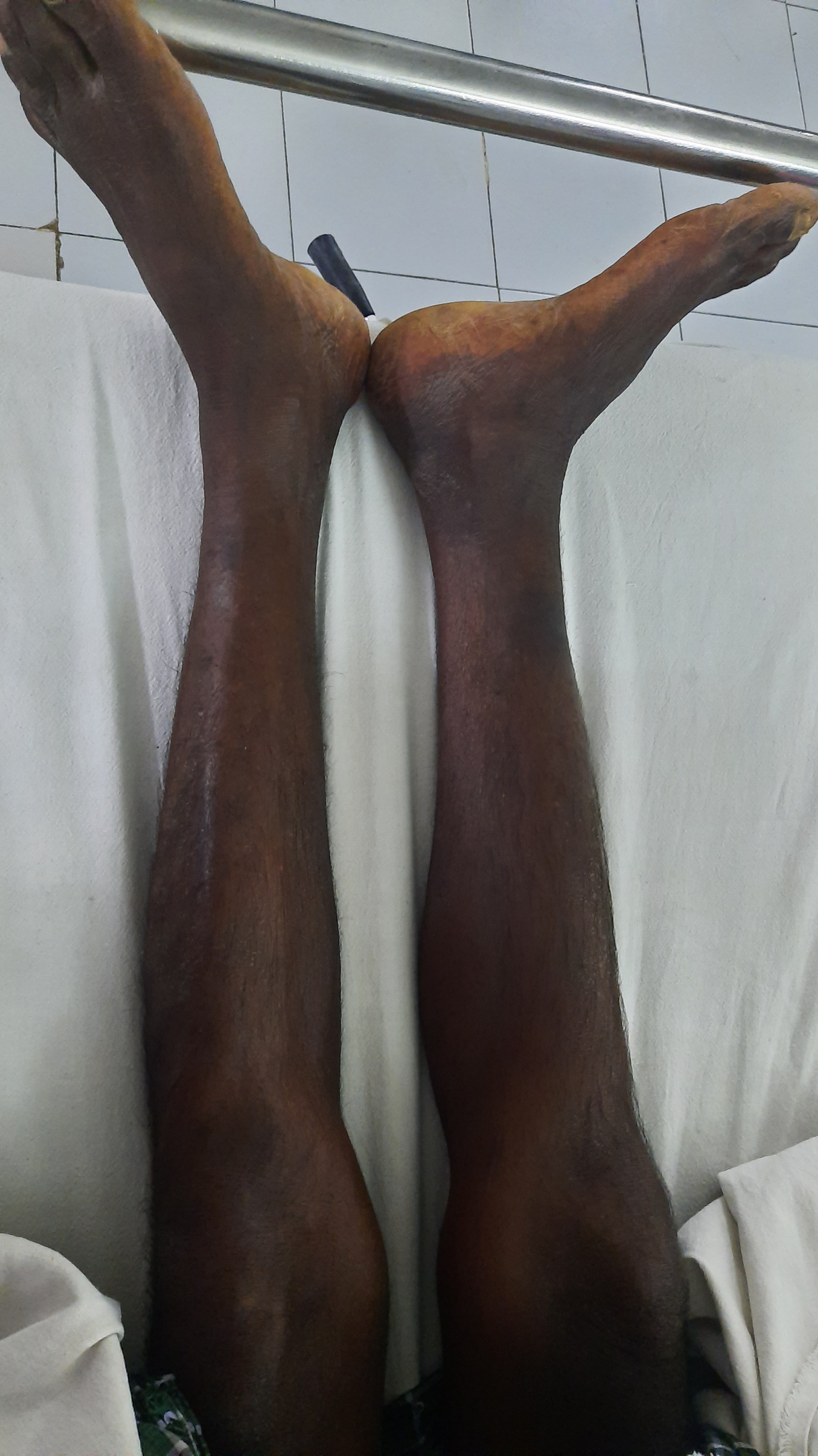 1month back patient developed weakness in his left hand with tingling and numbness sensation which is insidious in onset and gradually progressive in nature with no aggravating and releiving factors for that he visited the same previous Ayurveda doctor and started using some herbal medicine prescribed by him and then, 3to 4 days later, he developed fever (on and off) and no chills and rigors, which is insidious in onset and gradually progressive in nature along with the fever he also started experiencing leg (both the legs)pain and weakness as well as flank pain for which he went to the same Ayurvedic doctor and he got a scan done the doctor told him that he had stones in his kidneys and prescribed some herbal medicine with dolo and multivitamin tablets. But after this also the fever did not subsided so they again went to him (Ayurvedic doc) 10 days back and the doctor adviced some investigations and after that he told that his viral load is high and prescribed herbal medicine which are of high dose and after using this high dose herbal medicine for 4 to 5 days the patient developed dysphagia and pain in the throat which is insidious in onset and gradually progressive in nature (dysphagia initially to solids and then later to liquids).